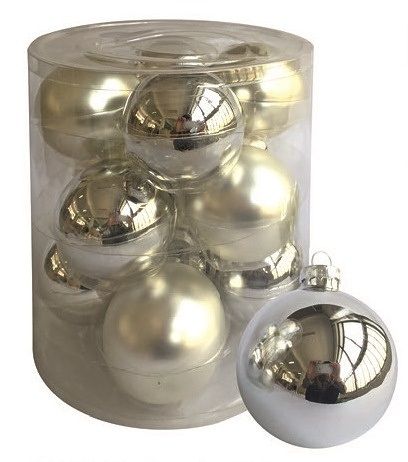 Sada skleněných baněk stříbrných 5,7 cm, 12 ks