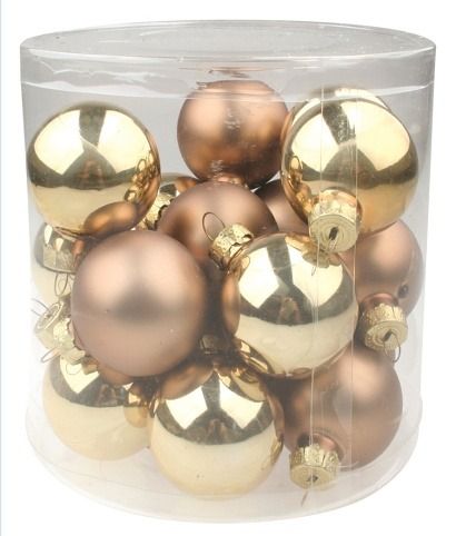 Sada skleněných baněk zlatých 4 cm, 18 ks