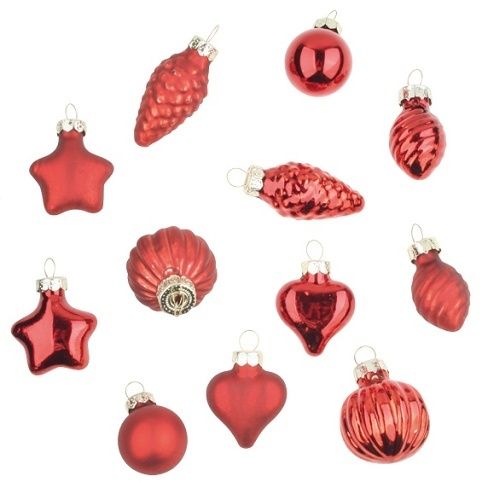 Sada skleněných ozdob červené 3-4 cm 12 ks
