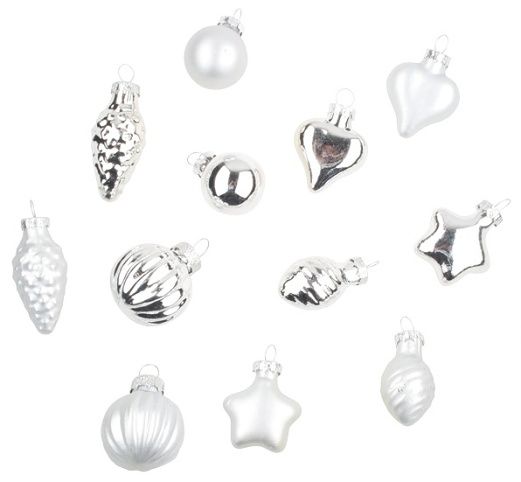 Sada skleněných ozdob stříbrné 3-4 cm 12 ks