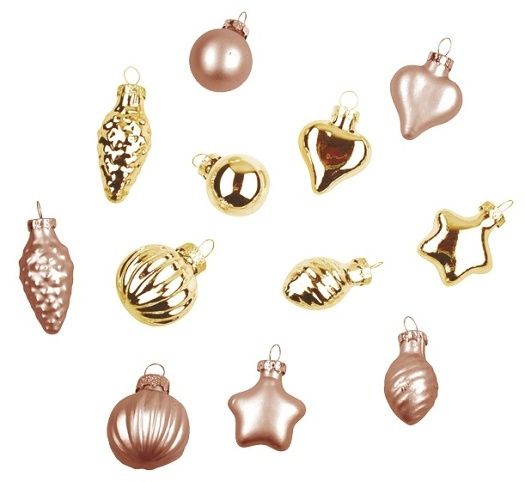 Sada skleněných ozdob zlaté 3-4 cm 12 ks