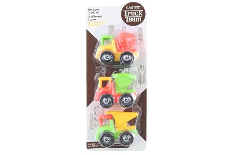 Sada tří autíček - stavební stoje. Rozměr balení 33,5 x 13,5 x 6 cm. Věk 3+