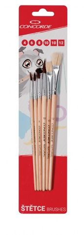 Sada štětců CONCORDE Natural kulaté, ploché 6 ks, blistr