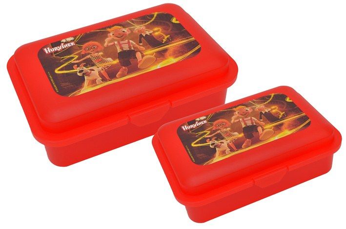Sada dvou plastových boxů s automatickým uzávěrem. Na svačinu do školy či na výlet. S obrázkem filmového Hurvínka. Obsah 1,0L+0,5L.