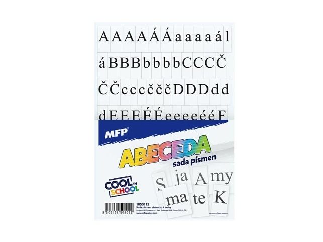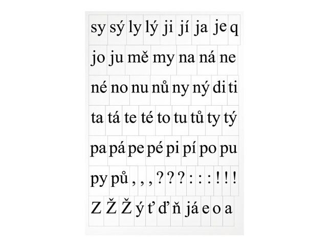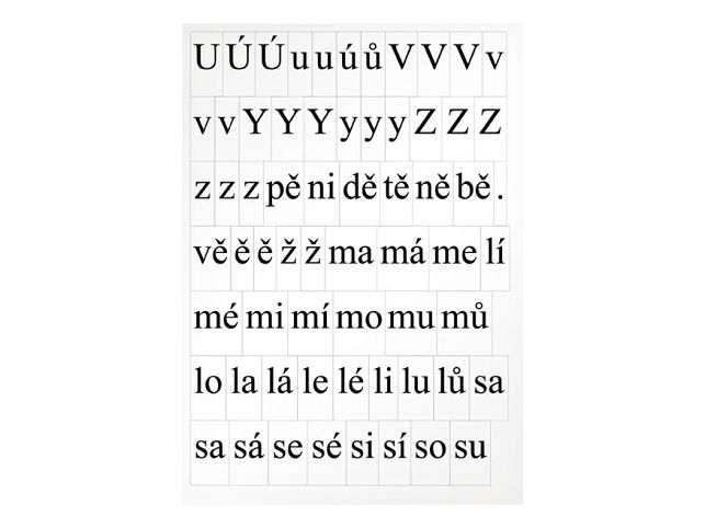 Sada 4 ks tisků formátu 210x297mm obsahující písmenka abecedy a slabiky na vystřihnutí, vhodné pro výuku v prvních ročnících základních škol.