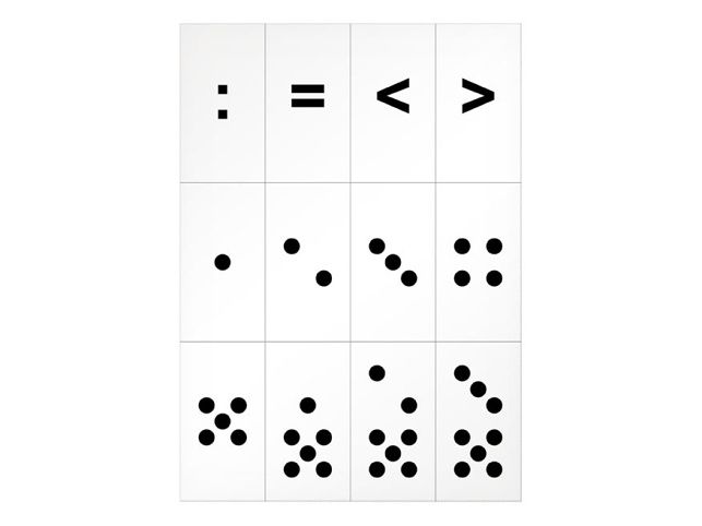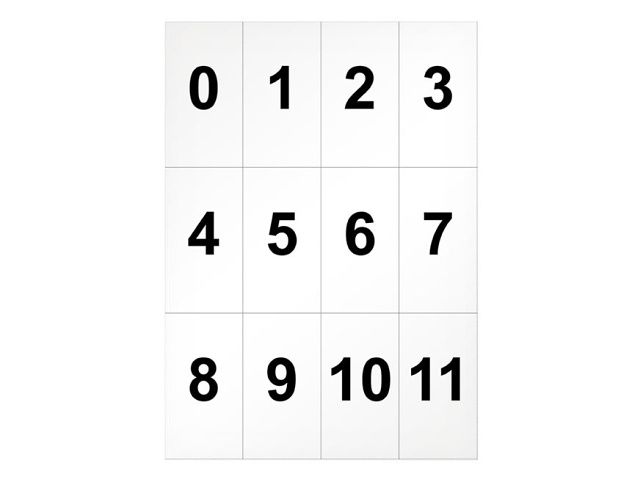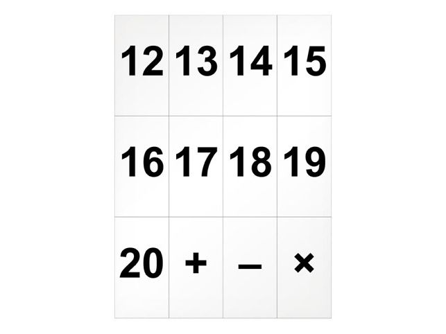 Sada 4ks tisků formátu 170x236mm obsahující číslice a znaky na vystřihnutí, vhodné pro výuku v prvních ročnících základních škol.