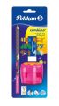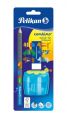 Sada Pelikan Combino 3 ks, trojhranný silná tužka, tvrdost B, lesní certifikace FSC, guma AL20, dvojité ořezávátko Flower, 2 barevné kombinace - modrá a růžová, ideální pro malé děti, na blistru