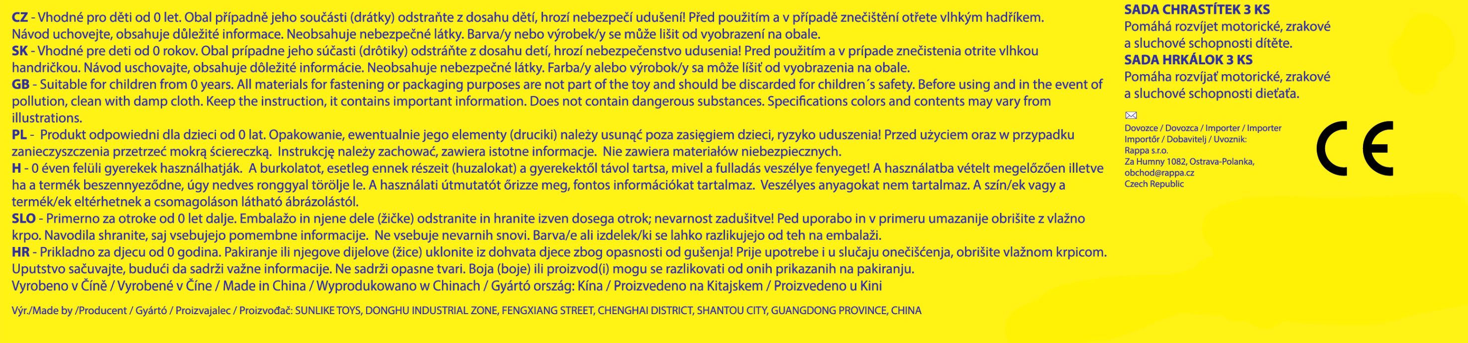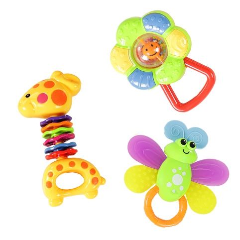 Rádi byste pořídili vašemu miminku hračku, kterou si zamiluje? Sada těchto veselých chrastítek je určena právě pro něj! Každé dítě má rádo pestré hračky, které vydávají zvuky a snadno se uchopí. S těmito roztomilými chrastítky zažije děťátko mnoho legrace a navíc si přitom rozvíjí motorické a zrakové schopnosti.