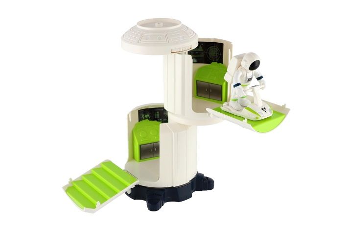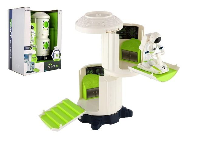 Tak tohle je pořádná stanice, kterou zaručeně musíš mít pro svoje vesmírné akce! Stanice má dvě kontrolní místnosti. S místnostmi můžete otáček jak budete potřebovat. Lze zde i "nabít" vesmírné auto (z jiné sady) nebo zaparkovat vesmírné vznášelo (v balení). Díky vesmírnému lanu na střeše stanice může kosmonaut v bezpečí podniknout vesmírnou procházku. Vesmírná stanice je světlem a zvukem, bude tam plnit realné představy dětí a užíjí si s kosmonauty mnoho zábavy. Na baterie, 2x AA, jsou součástí balení.