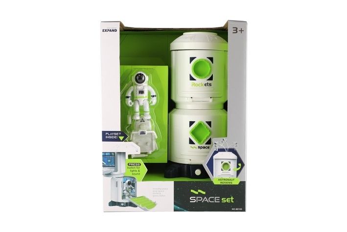 Sada vesmír plast astronaut,vesmírná stanice na baterie se světlem, zvukem v krabici 23x30
