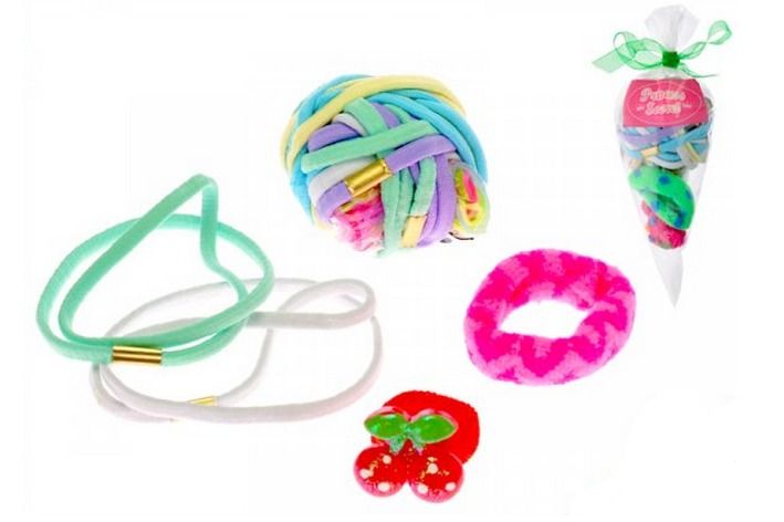 Sada gumiček pro všechny malé parádnice. Balení obsahuje 1 ozdobnou gumičku (s ozdobou) 1 širokou gumičku, mix užších gumiček s kovovou sponou a 1 balení gumičkových náramků (loom bands) s háčkem.