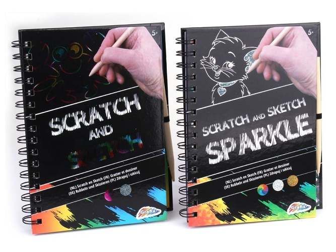 Sada vyškrabávacích obrázků včetně vyškrabávátka. Dva druhy. 10 listů formát A5