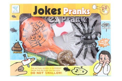 Sada žertovných předmětů obsahuje prdící polštářek, lejno, pavouka, hřebík s obvazem, žvýkačky s pastičkou. Rozměr balení cca 25 x 18 x 2,5 cm. Věk 3+