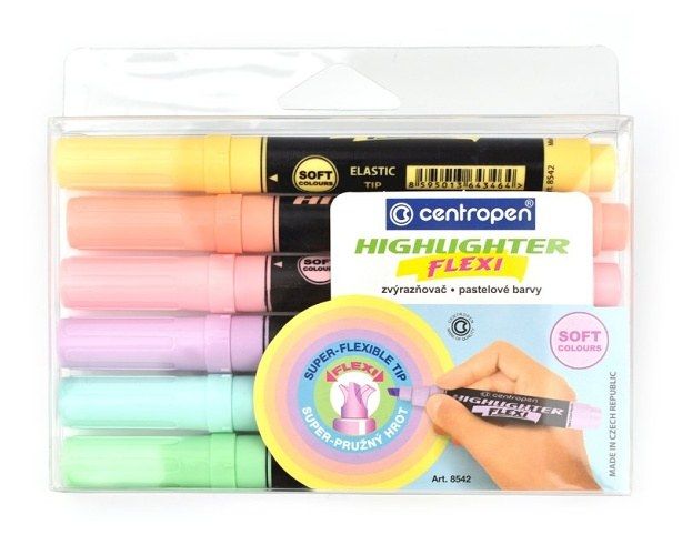 Sada zvýrazňovačů Centropen 8542/6, pastelové barvy, 6ks