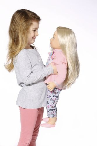 Sally je skvělou kamarádkou na hraní, mazlení a sdílení tajemství. Panenka ve velikosti 63 cm s měkkým tělíčkem má ráda ležérní styl a díky své velikosti si může zkoušet i opravdové dětské oblečení. Její nejoblíbenější tričko má dlouhé rukávy a potisk barevného jednorožce a duhy. Tričko skvěle ladí s růžovými balerínami a kalhotami s veselým potiskem. Dlouhé blonďaté vlásky jsou skvělé pro vymýšlení nových účesů.