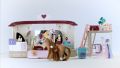 V salónu krásy si děti vyzkouší starost o koně či hříbata. Mohou uspořádat oslavu ve stáji, oslavu narozenin či první školní den. Obsah balení: 1 kůň Blossom s hřívou a ocasem, 1 trakénská klisna s kartáčovatelnou hřívou a ocasem, 1 štěně plemene Maltipoo, 1 plně pohyblivá figurka Sofie, 1 plně pohyblivá figurka paní Lopez-Mitchellové, 1 salon s otočným stolem. Vhodné pro děti od 3 let