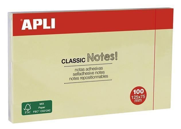 Samolepící bloček, 125x75 mm, 100 lístků, APLI, žlutý