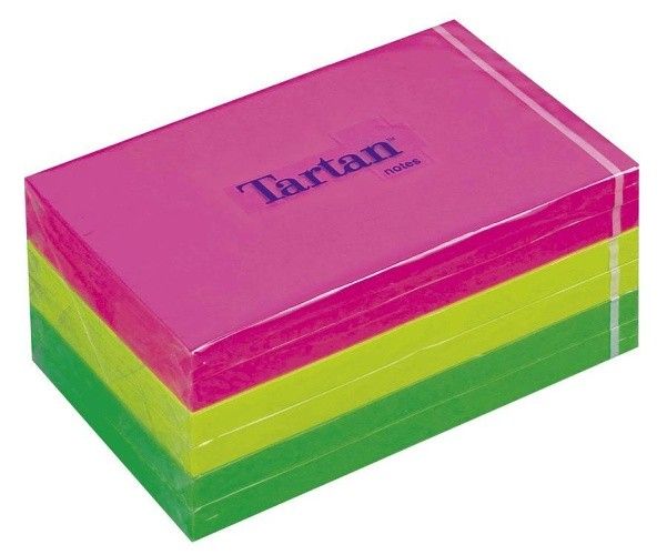 Samolepící bloček, 127x76 mm, 100 lístků, TARTAN, mix neon barev