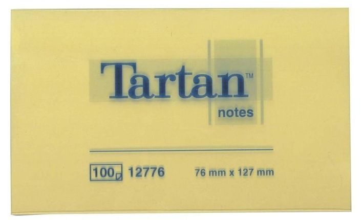 Samolepící bloček, 127x76 mm, 100 lístků, TARTAN, žlutý