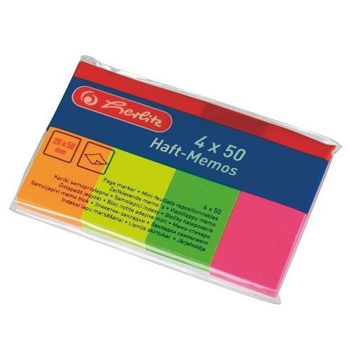 Samolepicí bloček 20x50 mm/50listů, 4ks barevný (Herlitz)