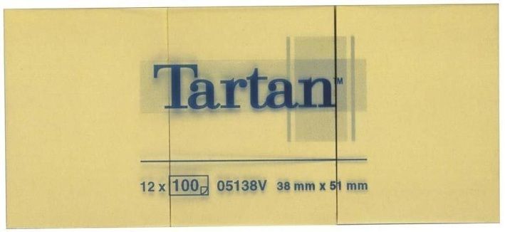 Samolepící bloček, 38x51 mm, 100 lístků, TARTAN, žlutý