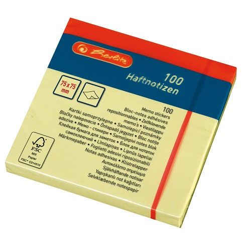 Samolepicí bloček 75x75 mm/100listů, žlutý (Herlitz)