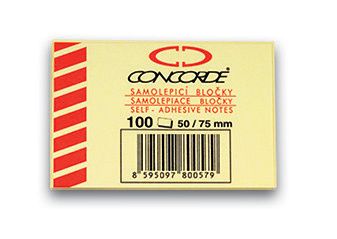 Samolepicí bloček CONCORDE 50x75mm, 100l., žlutý