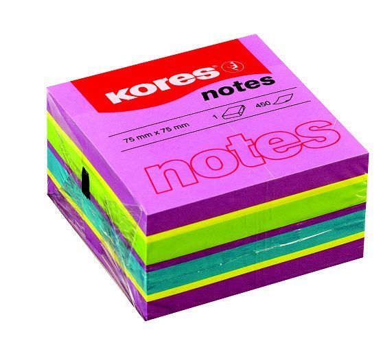 KORES Neonové bločky CUBO Spring 450 lístků 75x75mm, mix barev