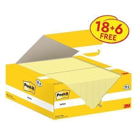 Samolepicí bloček, kanárkově žlutá, 38 x 51 mm, 24x 100 listů, 3M POSTIT 7100317764
