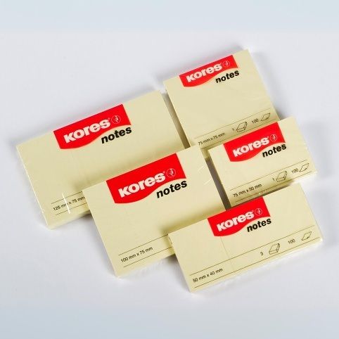 Samolepicí bloček Kores - žlutý - 75 × 75 mm, 100 listů