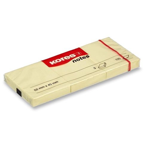 Samolepicí bloček Kores - žlutý - 50 × 40 mm, 3 × 100 listů
