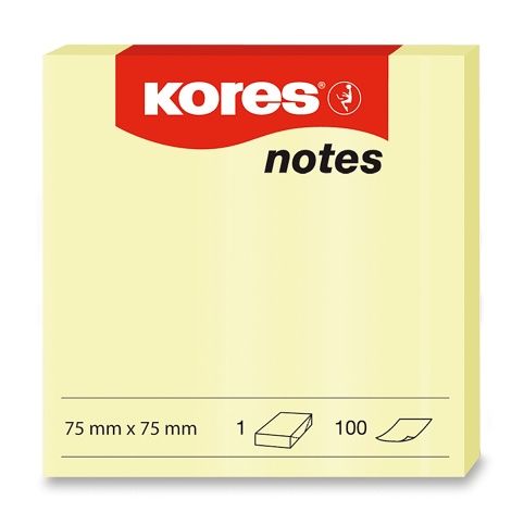 Samolepicí bloček Kores - žlutý - 75 × 75 mm, 100 listů