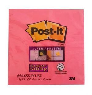 Samolepicí bloček, "Super sticky", červená, 76x127 mm, 90 listů, 3M POSTIT