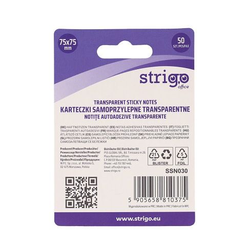 Samolepící bloček Strigo 50 ks růžový - transparentní