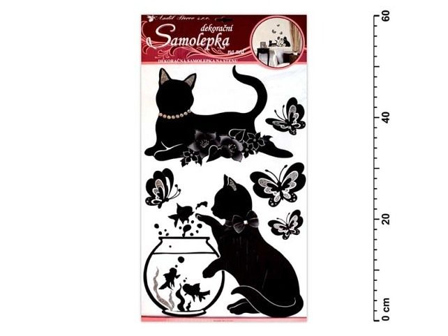 Pokojová samolepící dekorace - černé kočky s akváriem - na stěny, dveře, okna, zrcadla a jiné hladké plochy. Tato samolepka na zeď v mžiku oživí Váš obývací pokoj, koupelnu, chodbu, dětský pokoj či ložnici. NÁVOD: Opatrně sejměte samolepku z podkladového papíru a umístěte ji na zvolenou suchou, čistou a rovnou plochu. Samolepku vyhlaďte od středu ke krajům tak aby pod ní nezůstali žádné vzduchové bubliny. Uvedená cena je za 1 ks balení.