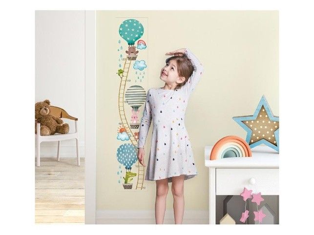 Samolepky na zeď dětský metr - zvířátka v balónu, do 120 cm