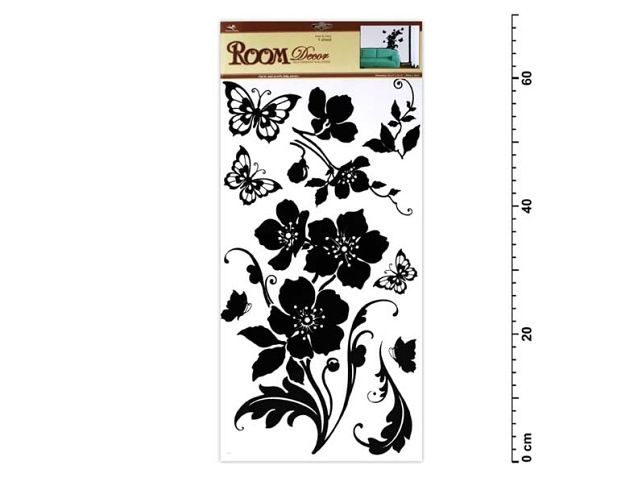 Pokojová samolepící dekorace - černá, květina s motýli - na stěny, dveře, okna, zrcadla a jiné hladké plochy. Tato samolepka na zeď v mžiku oživí Váš obývací pokoj, koupelnu, chodbu, dětský pokoj či ložnici. NÁVOD: Opatrně sejměte samolepku z podkladového papíru a umístěte ji na zvolenou suchou, čistou a rovnou plochu. Samolepku vyhlaďte od středu ke krajům tak aby pod ní nezůstali žádné vzduchové bubliny. Uvedená cena je za 1 ks.