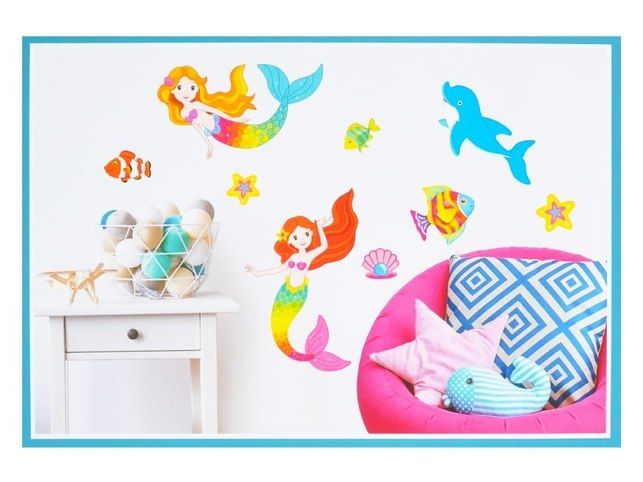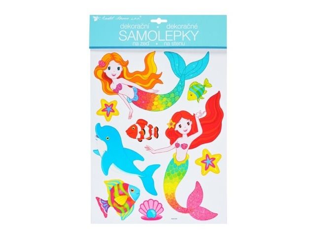 Dekorační samolepky na zeď - mořský svět, mořské panny Návod k použití: Opatrně sejměte samolepku z podkladového papíru. umístětě na zvolenou suchou a čistou plochu. Vyhlaďte od středu ke krajům.
