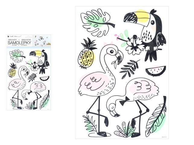 Samolepící dekorace 10451 plameňáci a tukan 24 x 42 cm