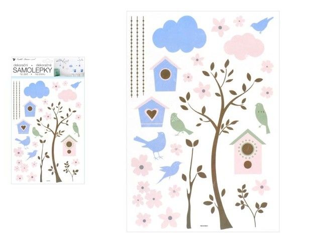 Pokojová samolepící dekorace - strom a budky - na stěny, dveře, okna, zrcadla a jiné hladké plochy. Tato samolepka na zeď v mžiku oživí Váš obývací pokoj, koupelnu, chodbu, dětský pokoj či ložnici. NÁVOD: Opatrně sejměte samolepku z podkladového papíru a umístěte ji na zvolenou suchou, čistou a rovnou plochu. Samolepku vyhlaďte od středu ke krajům tak aby pod ní nezůstali žádné vzduchové bubliny. Uvedená cena je za 1 ks.
