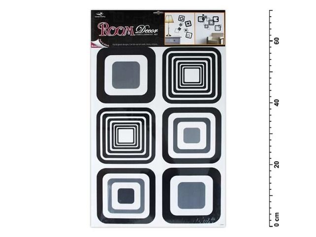 Pokojová samolepící dekorace - černé čtverce - na stěny, dveře, okna, zrcadla a jiné hladké plochy. Tato samolepka na zeď v mžiku oživí Váš obývací pokoj, koupelnu, chodbu, dětský pokoj či ložnici. NÁVOD: Opatrně sejměte samolepku z podkladového papíru a umístěte ji na zvolenou suchou, čistou a rovnou plochu. Samolepku vyhlaďte od středu ke krajům tak aby pod ní nezůstali žádné vzduchové bubliny. Uvedená cena je za 1 ks.