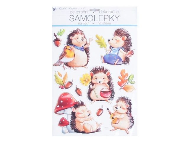 Dekorační samolepka na zeď plastická - ježci. Samolepky jsou vhodné na stěny, zrcadla, kachličky a jiné hladké plochy. NÁVOD: Opatrně sejměte samolepku z podkladového papíru a umístěte ji na zvolenou suchou a čistou plochu. Vyhlaďte od středu ke krajům. Uvedená cena je za 1 arch.