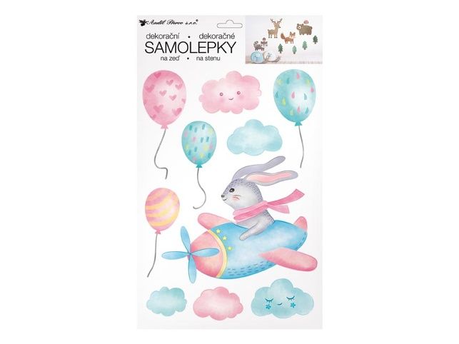Samolepka na zeď 24 x 42 cm, zajíc v letadle