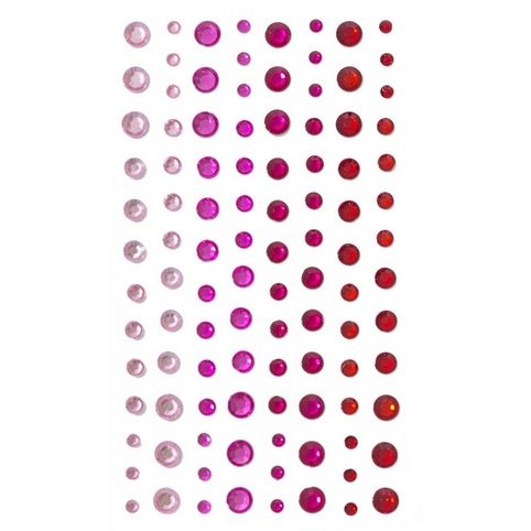 Samolepicí dekorační kamínky - mix velikostí, červené odstíny, 104 ks