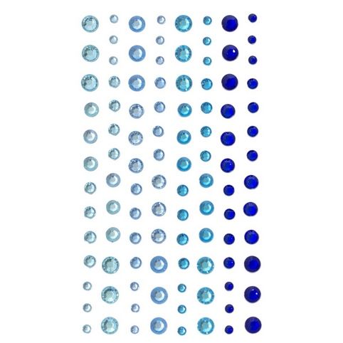 Samolepicí dekorační kamínky - mix velikostí, modré odstíny, 104 ks