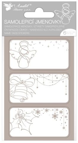 Samolepicí jmenovky na dárky 8 x 16 cm se stříbrnou ražbou, 6 ks