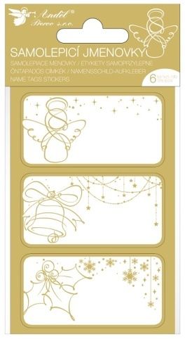 Samolepicí jmenovky na dárky 8 x 16 cm se zlatou ražbou, 6 ks