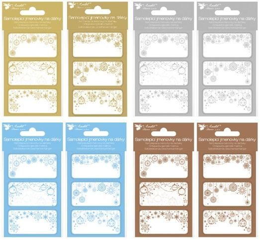 Samolepicí jmenovky na dárky 8x16 cm s glitry, 6 ks / 10654