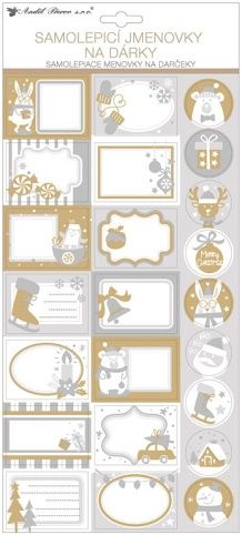 Samolepící jmenovky na dárky s glitry 18x40cm 23ks