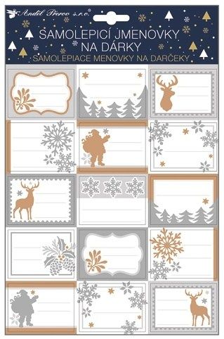 Samolepicí jmenovky na dárky s glitry 30x20 cm, 15 ks